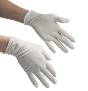 Del kompleta je tudi par zaščitnih rokavic, ki se uporablja v zdravstvu za preprečevanje prenosa okužb.