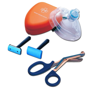 •  Britvica - majhen, a včasih nujen pripomoček pri uporabi defibrilatorja, ki bi moral biti takoj pri roki.